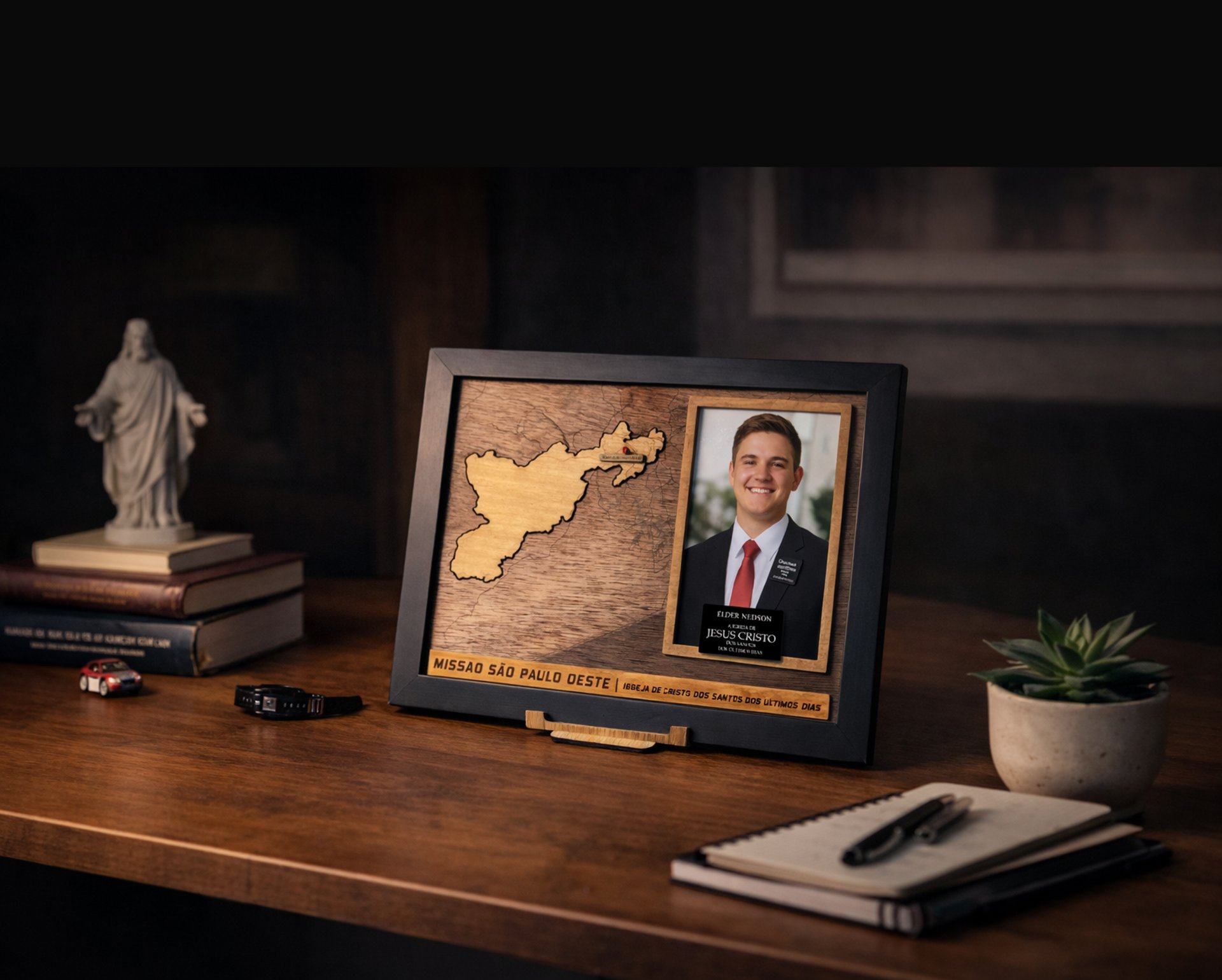O retorno da missão é um dos momentos mais marcantes da vida de uma família. Esse quadro transforma essa conquista em algo visível, presente e permanente dentro do lar.