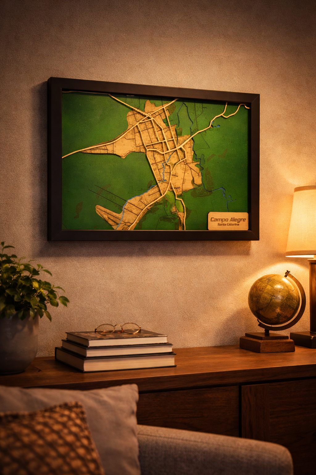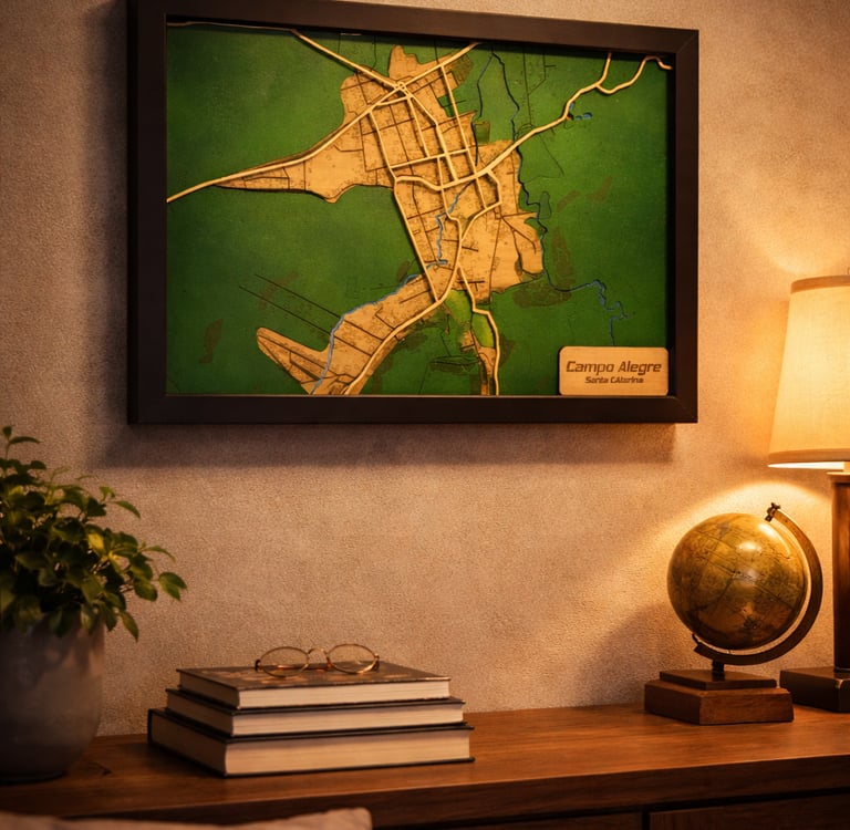 Aqui, o mapa deixa de ser apenas decoração e passa a ser obra central, capaz de transformar a atmosfera do espaço e provocar conversa, memória e emoção.
